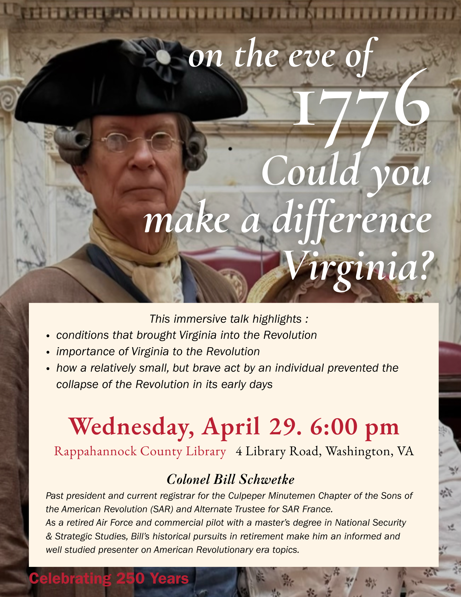 On the Eve of 1776 – Could You Make a Difference? 250th Anniversary Talk