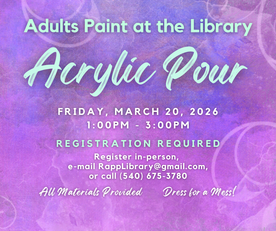 Registration Required: in-person, rapplibrary@gmail.com, or (540) 675-3780.
