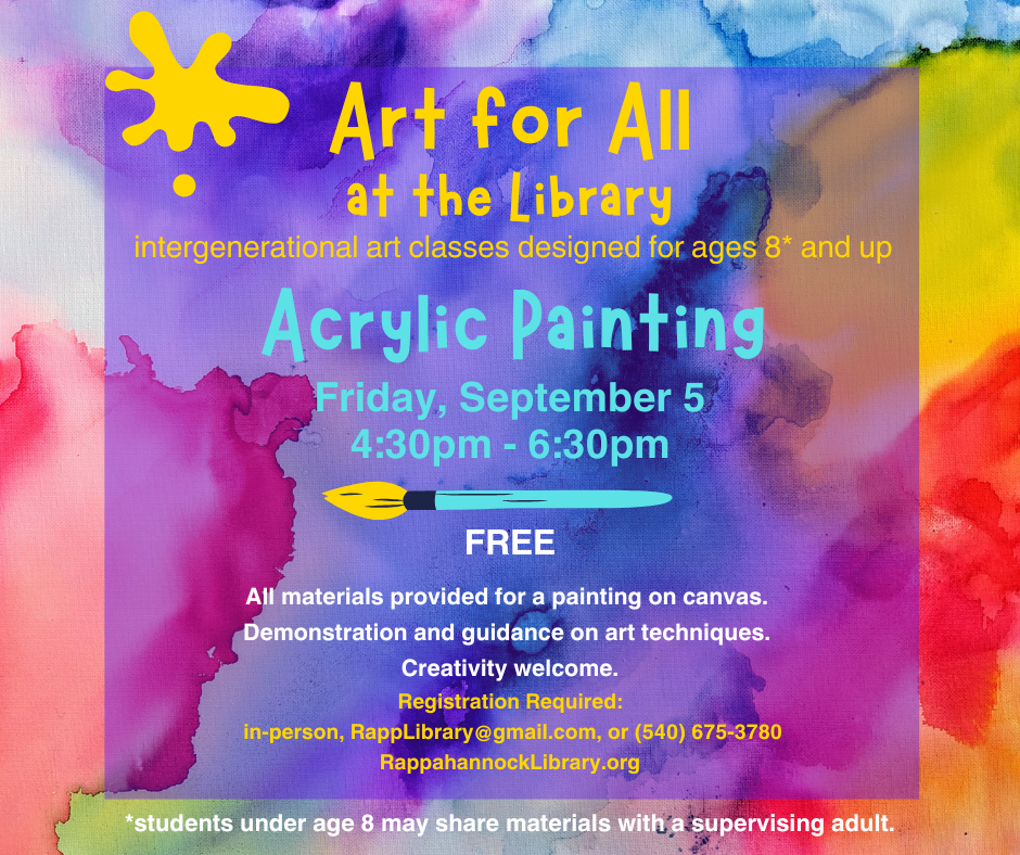 Registration Required: in-person, Rapplibrary@gmail.com, or (540) 675-3780. Children under 12 should be accompanied by an adult.